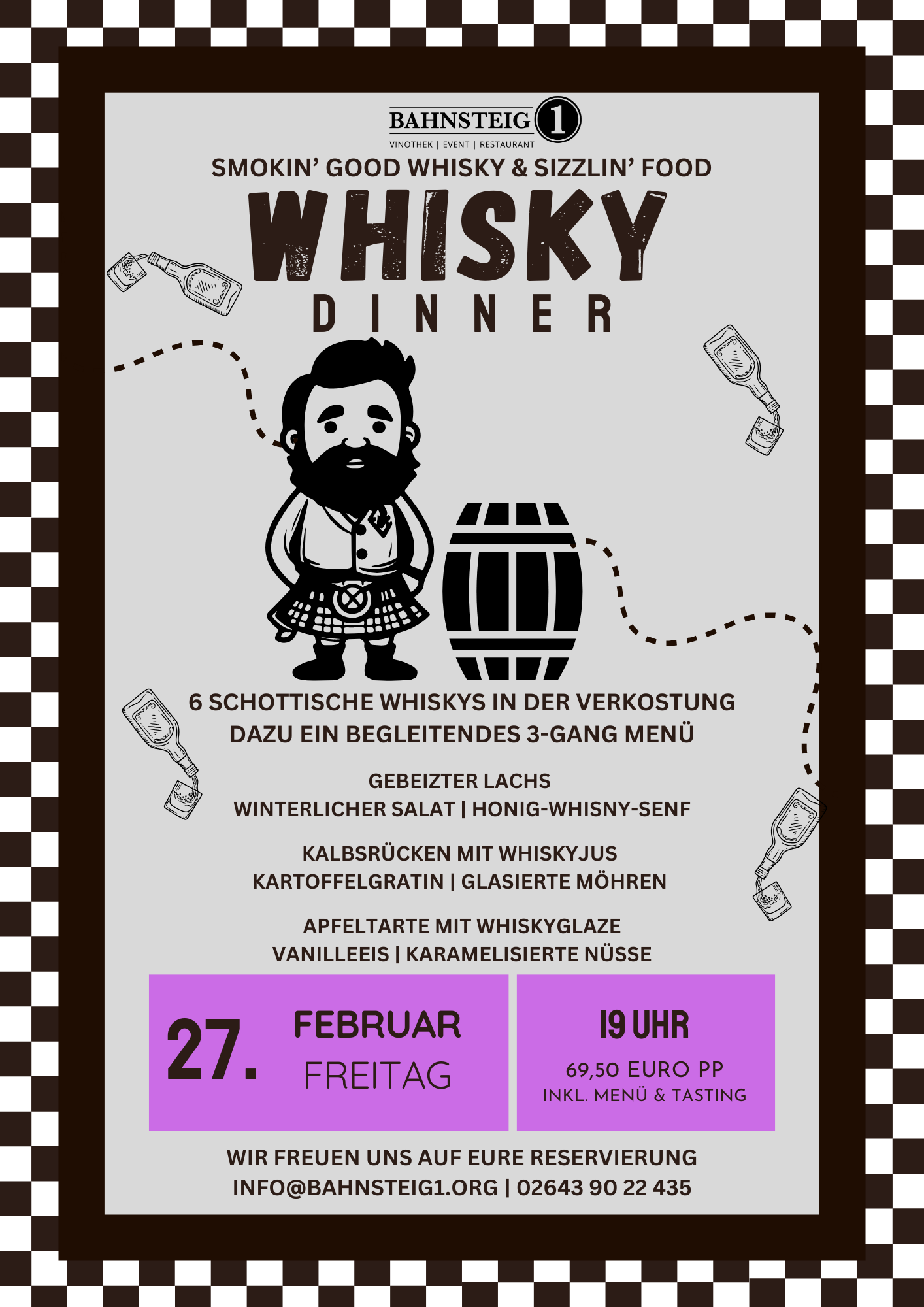 69,50 Euro pP inkl. Whiskytasting & Menü