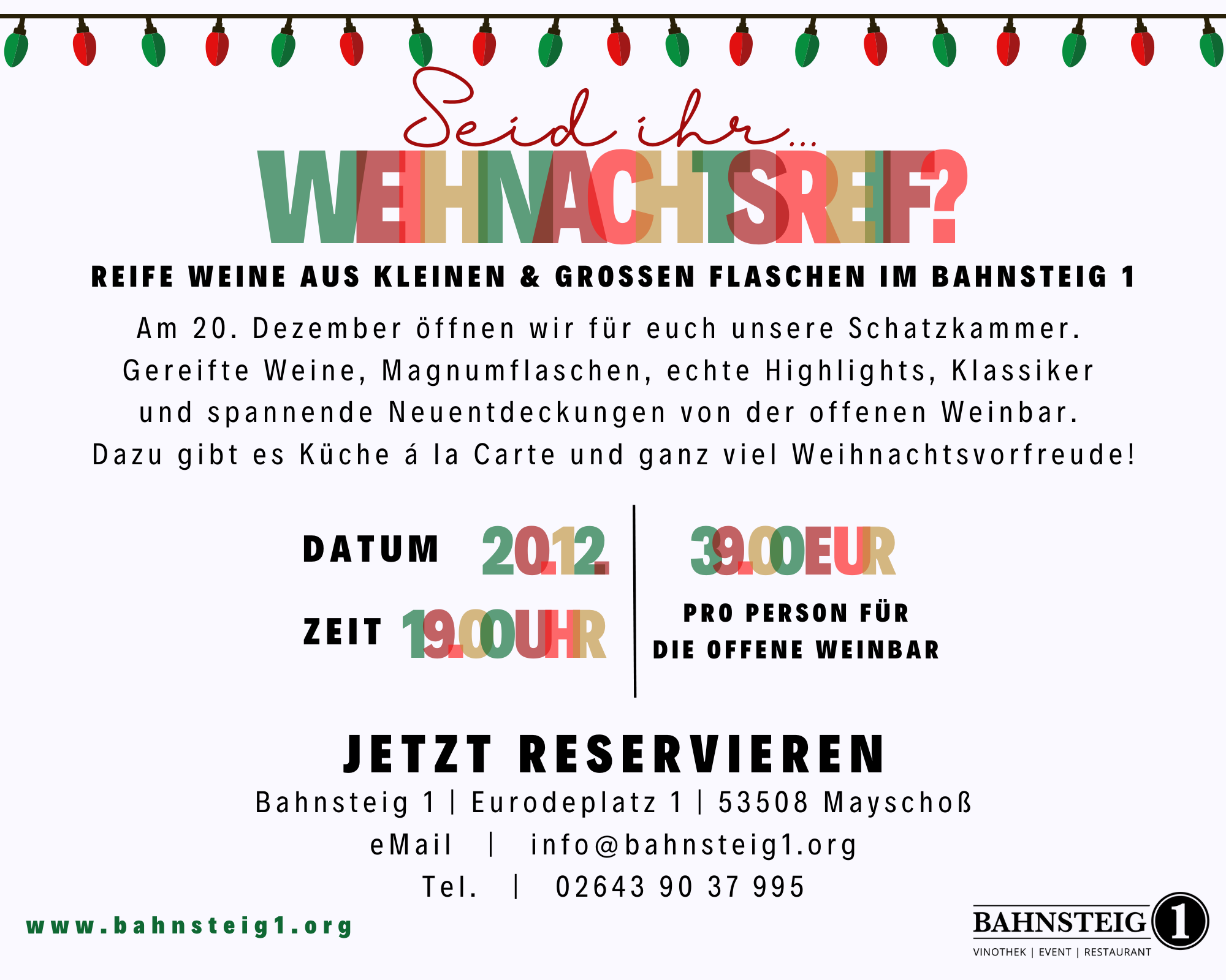 Wir bitte um Reservierung unter 02643 90 37 995 oder 02643 90 22 435
